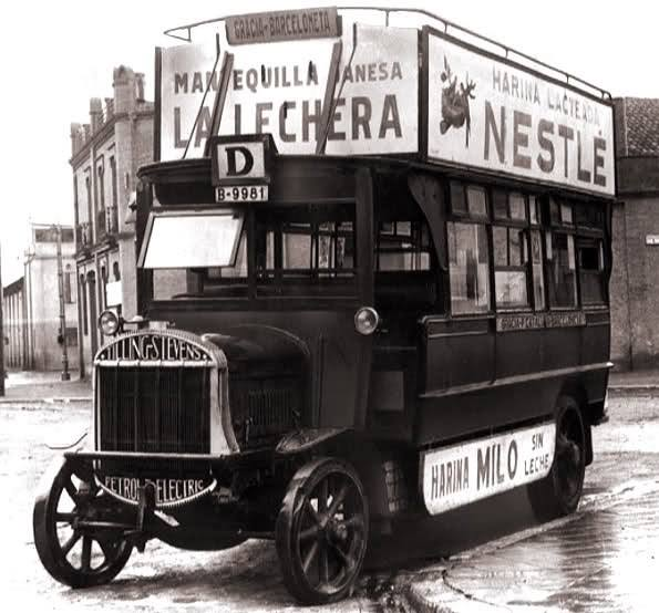 Poco después, la Compañía General de Autobuses de Barcelona inauguró el 14 de octubre de 1922 sus dos primeras líneas en la capital catalana, incorporándose posteriormente más líneas tanto urbanas como interurbanas. Para cubrir los servicios se adquirieron autobuses importados de Inglaterra de la firma Tilling Stevens, tanto de una planta como imperiales. Dichos vehículos tenían la particularidad de funcionar mediante un sistema llamado petrol-electric, consistente en un motor de explosión de gasolina (el llamado aceite pesado) que funcionaba conectado a una dinamo eléctrica responsable de transmitir el movimiento a las ruedas. Se convirtieron así en un claro precedente de los actuales autobuses híbridos.